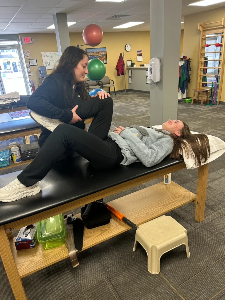 “Kelsie is an outstanding physical therapist—11/10, highly recommend! I came to PTI after surgery to repair a torn meniscus, and Kelsie was consistently positive, relatable, and motivating, while also knowing exactly when to push me. Early on, I was hesitant and fearful about what my knee could handle, but she quickly recognized that and became my biggest cheerleader. She made every session feel like progress by creating achievable “wins”, whether that meant increasing ankle weights or pushing my range a bit further on the stim machine. Kelsie struck the perfect balance between encouragement and challenge, helping me build confidence and leave each appointment feeling accomplished—even on the sore days.” – E.G.